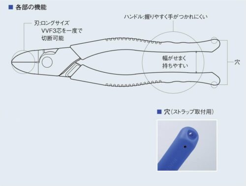 VVF線(3芯)はもちろん、鉄線等の切断が可能です。